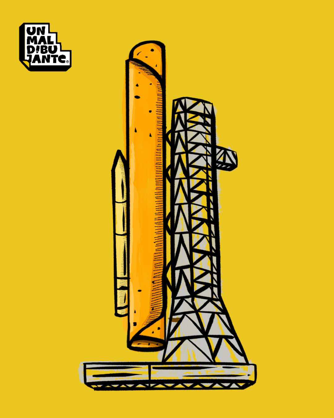 At Un Mal Dibujante, my goal is to find the hidden metaphors in global news. For this piece, I replaced the SLS rocket’s iconic orange external tank with a rolled corn tortilla. This isn't just a "Space Taco." It’s a visual commentary on how cultural heritage and scientific necessity intersect. By using my signature "honest stroke" and a minimalist palette, I wanted to highlight a powerful truth: Mexico isn't just watching the space race; we are fueling it.