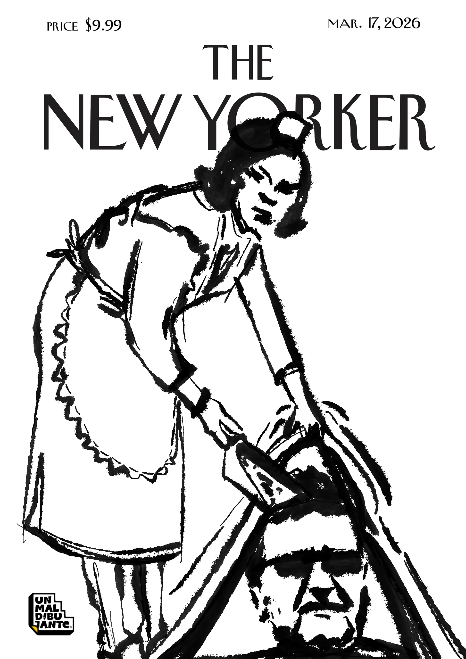 To emphasize this narrative, the piece leans into the signature Un Mal Dibujante style: a deliberate contrast between the "clean" and the "raw." The high-contrast, ink-heavy strokes—unrefined and almost visceral—clash intentionally with the legendary yellow palette and minimalist layout of the magazine. This juxtaposition of messy, expressive line work against a structured editorial backdrop mirrors the subject itself: a chaotic street legacy finally framed, titled, and priced for the world to consume.